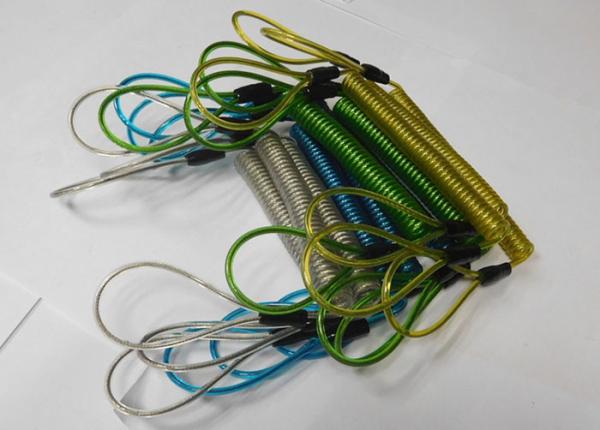 Customized PU Colors Double Loops High Tension Spring Steel Wire Tool Lanyard Retainers Images |